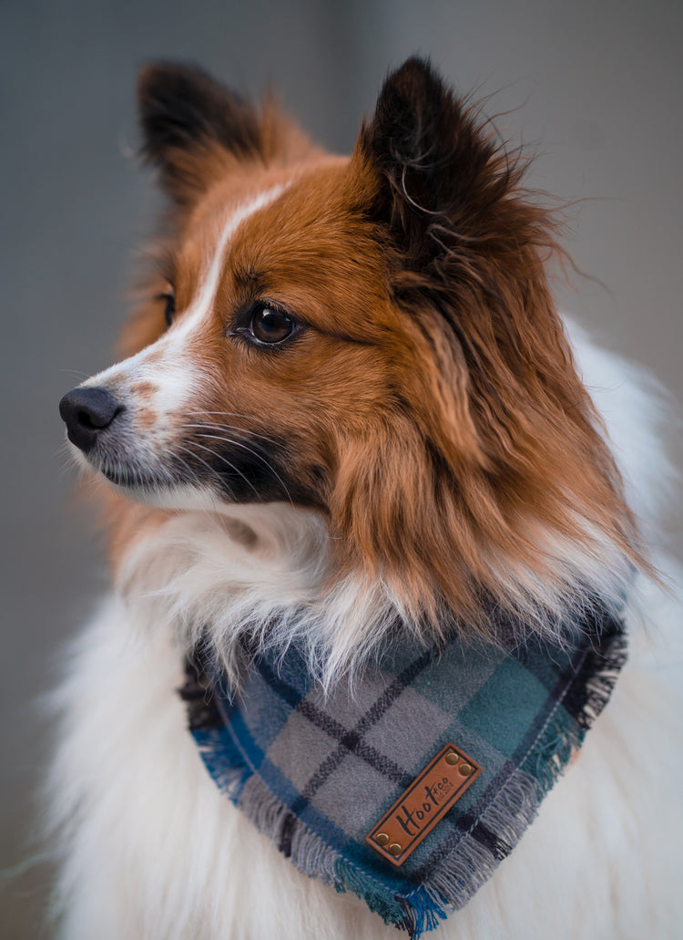 Snap On Bandana - Cotton flannel fabric, a coordinating solid backing and a durable Hoot + Co logo metal snap. Each bandana is hand cut and sewn to fit your animal precisely. Our bandanas feature a curved neck for a comfortable fit that won’t bunch up. All of our bandanas are reversible! Just simply snap them on the other way and you have a solid bandana also, perfect for adding your favorite patch to!