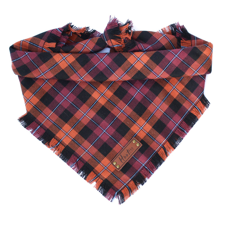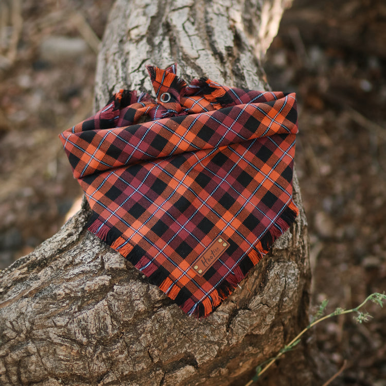 Frayed Bandana - Each bandana features a faux leather tag, frayed edges around all four edges, and an added snap for durability. Simply roll + tie the bandana to fit your pup. This style has more sizing adjustability than a snap on.
