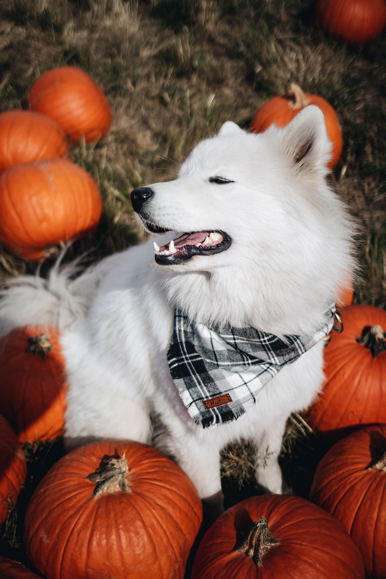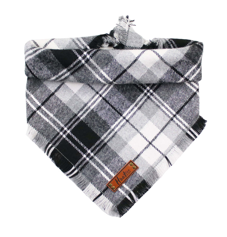 Snap On Bandana - Cotton flannel fabric, a coordinating solid backing and a durable Hoot + Co logo metal snap. Each bandana is hand cut and sewn to fit your animal precisely. Our bandanas feature a curved neck for a comfortable fit that won’t bunch up. All of our bandanas are reversible! Just simply snap them on the other way and you have a solid bandana also, perfect for adding your favorite patch to!
