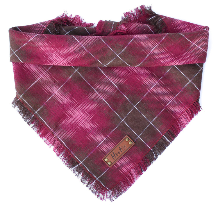 Frayed Bandana - Each bandana features a faux leather tag, frayed edges around all four edges, and an added snap for durability. Simply roll + tie the bandana to fit your pup. This style has more sizing adjustability than a snap on.