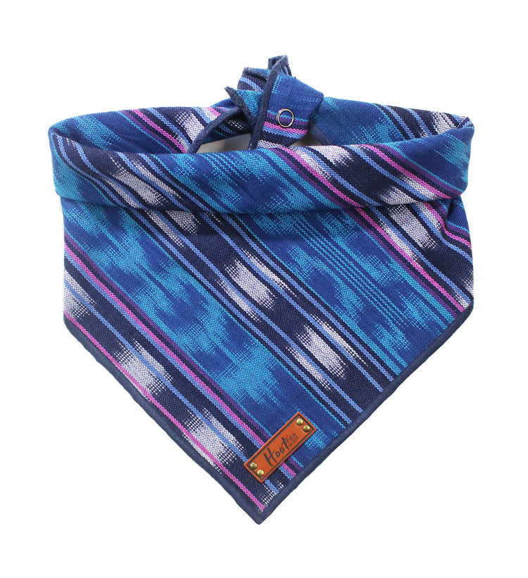 Each bandana features a faux leather tag and an added snap for durability. Simply roll + tie the bandana to fit your pup. This style has more sizing adjustability than a snap on.