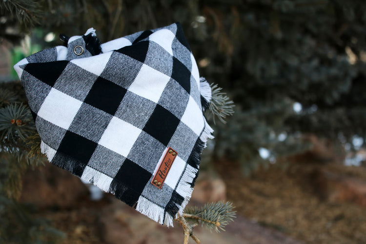 Each item is handmade from start to finish. Each bandana features a 100% Vegan Faux leather tag, frayed edges around all four edges, an added snap for durability and a instructional card with wear and wash information. With more adjustability, our new style only comes in four sizes. Please adjust the sizing using our size chart in the last photo from our standard bandanas to the fray as they're different. If your dog is fluffy, go with the larger of the two if the size falls into both categories. Example - An Australian shepherd will fit a Large fray best, but a Vizla can fit a standard due to small neck size and limited fur.