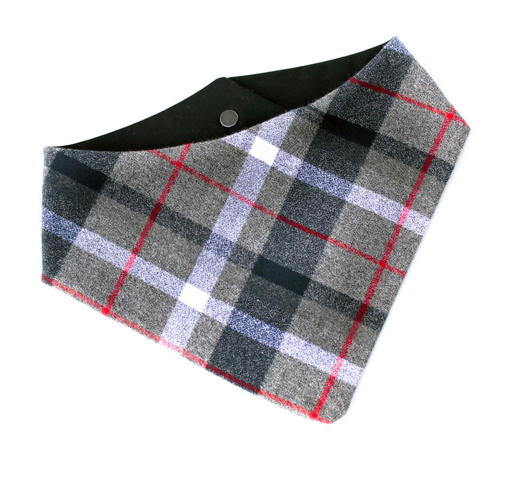 Snap On Bandana - Cotton flannel fabric, a coordinating solid backing and a durable Hoot + Co logo metal snap. Each bandana is hand cut and sewn to fit your animal precisely. Our bandanas feature a curved neck for a comfortable fit that won’t bunch up. All of our bandanas are reversible! Just simply snap them on the other way and you have a solid bandana also, perfect for adding your favorite patch to!