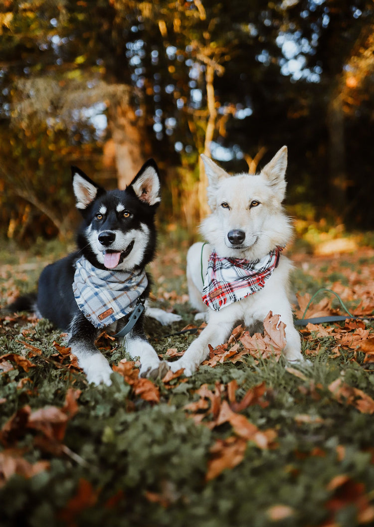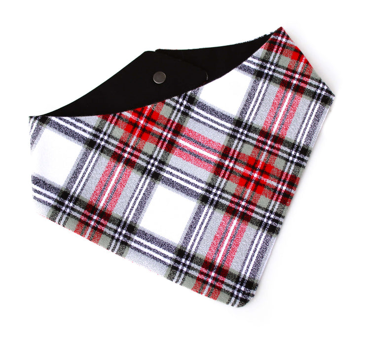 Snap On Bandana - Cotton flannel fabric, a coordinating solid backing and a durable Hoot + Co logo metal snap. Each bandana is hand cut and sewn to fit your animal precisely. Our bandanas feature a curved neck for a comfortable fit that won’t bunch up. All of our bandanas are reversible! Just simply snap them on the other way and you have a solid bandana also, perfect for adding your favorite patch to!