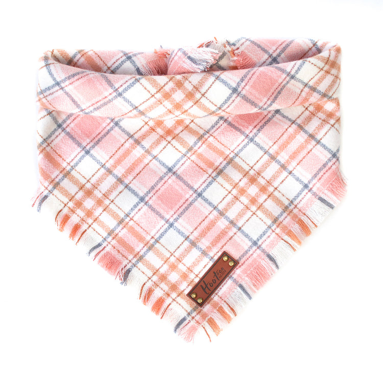 Frayed Bandana - Each bandana features a faux leather tag, frayed edges around all four edges, and an added snap for durability. Simply roll + tie the bandana to fit your pup. This style has more sizing adjustability than a snap on.