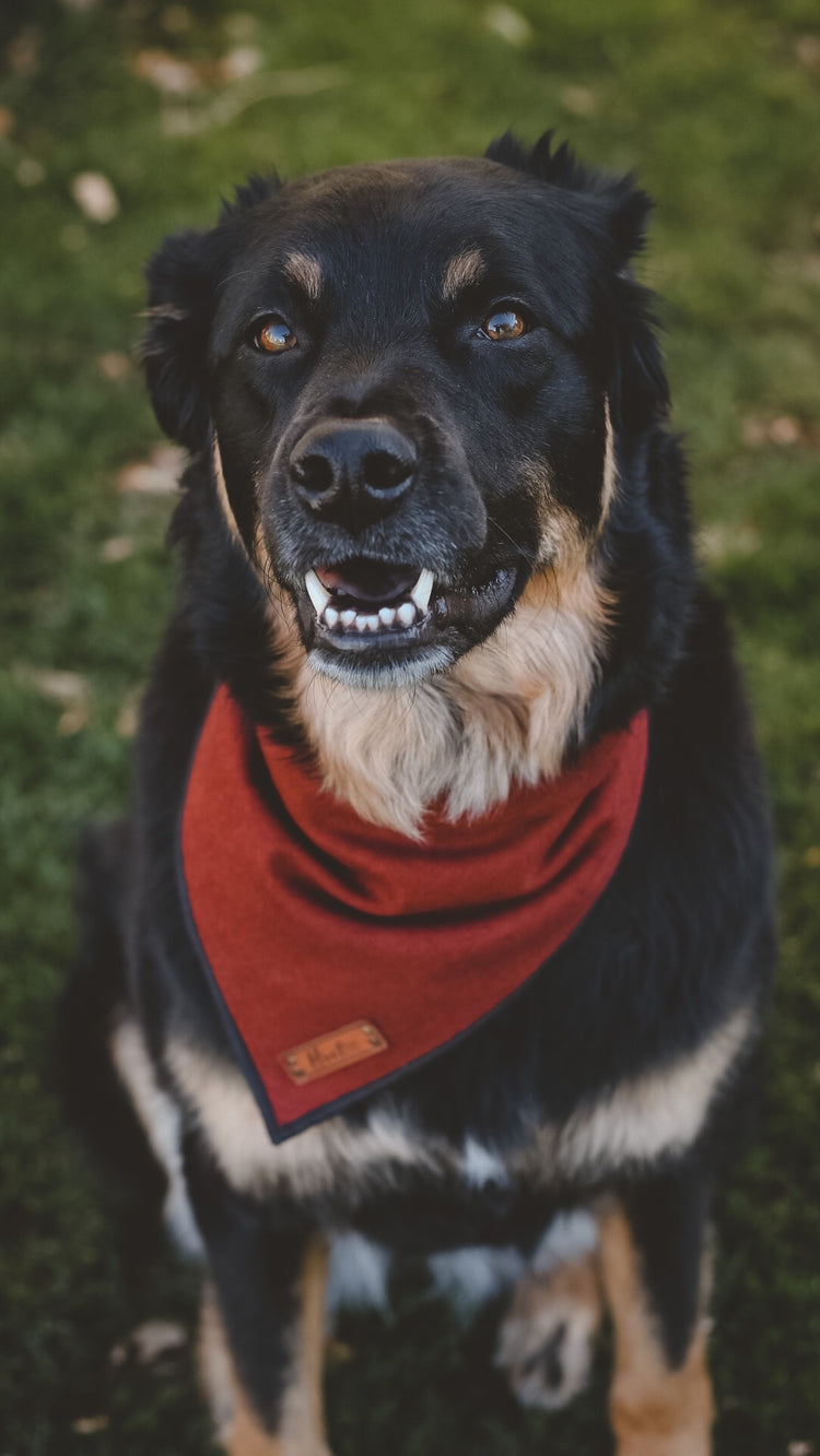 Each bandana features a faux leather tag, rolled edges, and an added snap for durability. With more adjustability, our new style only comes in four sizes. Please adjust the sizing using our size chart in the last photo from our standard bandanas to the fray as they're different. If your dog is fluffy, go with the larger of the two if the size falls into both categories. Example - An Australian shepherd will fit a Large fray best, but a Vizla can fit a standard due to small neck size and limited fur.
