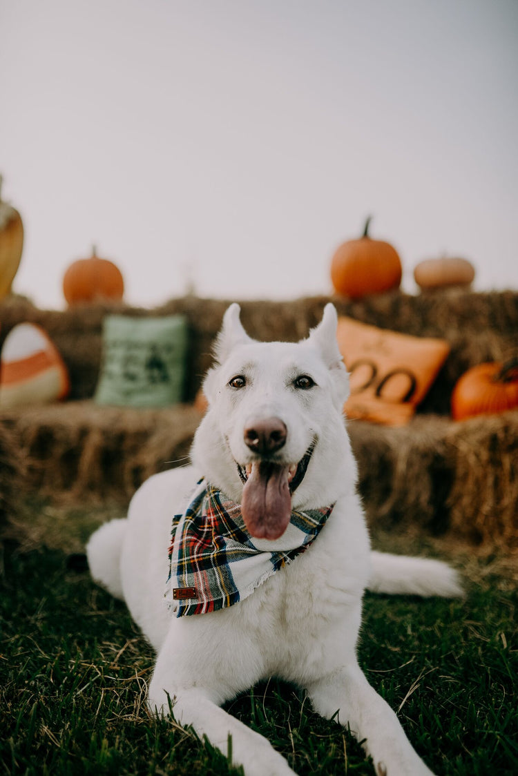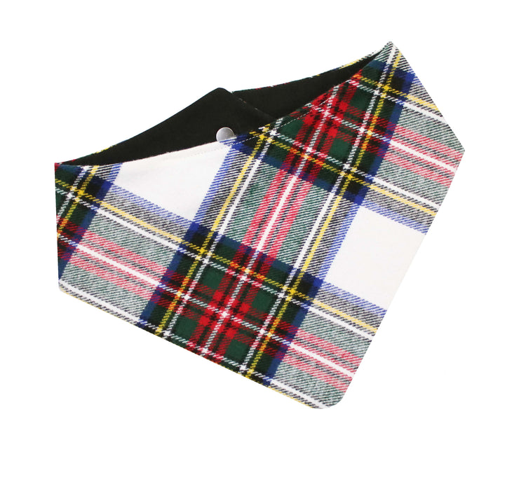 Snap On Bandana - Cotton flannel fabric, a coordinating solid backing and a durable Hoot + Co logo metal snap. Each bandana is hand cut and sewn to fit your animal precisely. Our bandanas feature a curved neck for a comfortable fit that won’t bunch up. All of our bandanas are reversible! Just simply snap them on the other way and you have a solid bandana also, perfect for adding your favorite patch to!