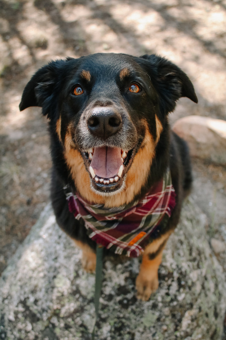 Snap On Bandana - Cotton flannel fabric, a coordinating solid backing and a durable Hoot + Co logo metal snap. Each bandana is hand cut and sewn to fit your animal precisely. Our bandanas feature a curved neck for a comfortable fit that won’t bunch up. All of our bandanas are reversible! Just simply snap them on the other way and you have a solid bandana also, perfect for adding your favorite patch to!
