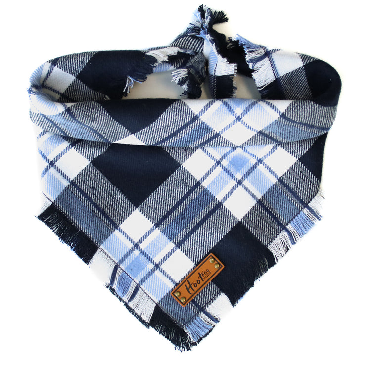 Snap On Bandana - Cotton flannel fabric, a coordinating solid backing and a durable Hoot + Co logo metal snap. Each bandana is hand cut and sewn to fit your animal precisely. Our bandanas feature a curved neck for a comfortable fit that won’t bunch up. All of our bandanas are reversible! Just simply snap them on the other way and you have a solid bandana also, perfect for adding your favorite patch to!