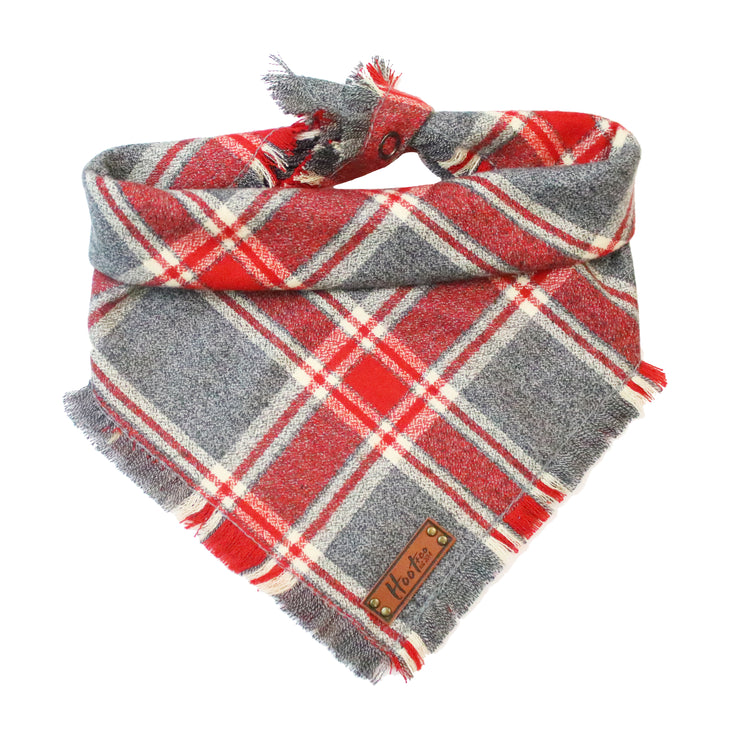 Snap On Bandana - Cotton flannel fabric, a coordinating solid backing and a durable Hoot + Co logo metal snap. Each bandana is hand cut and sewn to fit your animal precisely. Our bandanas feature a curved neck for a comfortable fit that won’t bunch up. All of our bandanas are reversible! Just simply snap them on the other way and you have a solid bandana also, perfect for adding your favorite patch to!