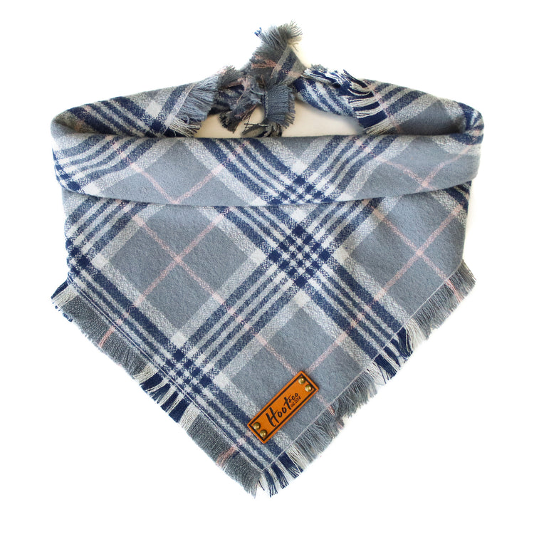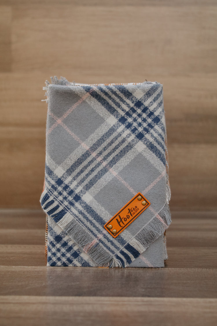 Snap On Bandana - Cotton flannel fabric, a coordinating solid backing and a durable Hoot + Co logo metal snap. Each bandana is hand cut and sewn to fit your animal precisely. Our bandanas feature a curved neck for a comfortable fit that won’t bunch up. All of our bandanas are reversible! Just simply snap them on the other way and you have a solid bandana also, perfect for adding your favorite patch to!