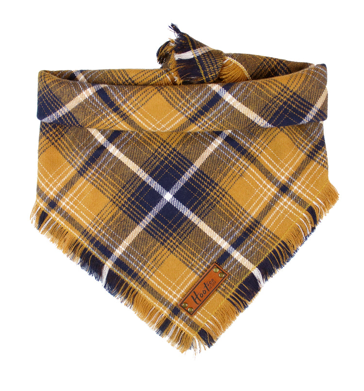 Snap On Bandana - Cotton flannel fabric, a coordinating solid backing and a durable Hoot + Co logo metal snap. Each bandana is hand cut and sewn to fit your animal precisely. Our bandanas feature a curved neck for a comfortable fit that won’t bunch up. All of our bandanas are reversible! Just simply snap them on the other way and you have a solid bandana also, perfect for adding your favorite patch to!