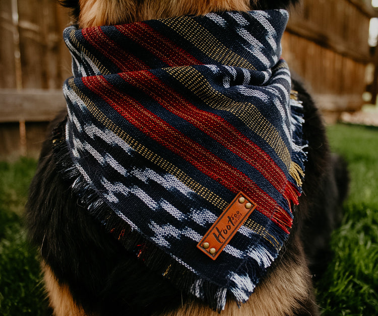 Each item is handmade from start to finish. Each bandana features a faux leather tag, frayed around all four edges, and an added snap for durability. With more adjustability, our new style only comes in four sizes. Please adjust the sizing using our size chart in the last photo from our standard bandanas to the fray as they're different. If your dog is fluffy, go with the larger of the two if the size falls into both categories. Example - An Australian shepherd will fit a Large fray best, but a Vizla can fit a standard due to small neck size and limited fur.