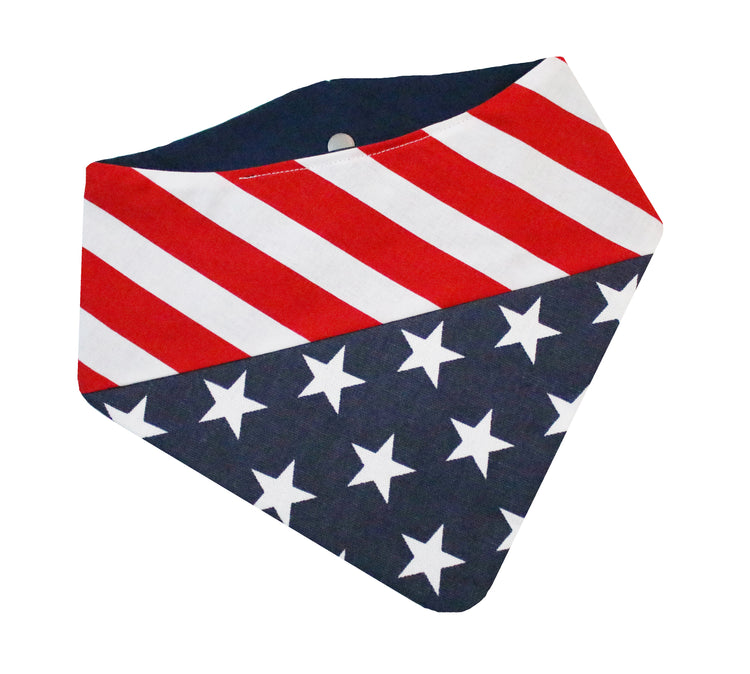 Our pet bandanas are made with high quality fabric, a coordinating solid backing and a durable Hoot + Co logo metal snap. Each bandana is hand cut and sewn to fit your animal precisely. Our bandanas feature a curved neck for a comfortable fit that won’t bunch up. All of our bandanas are reversible! Just simply snap them on the other way and you have a solid bandana also, perfect for adding your favorite patch to!