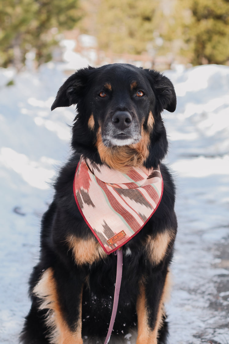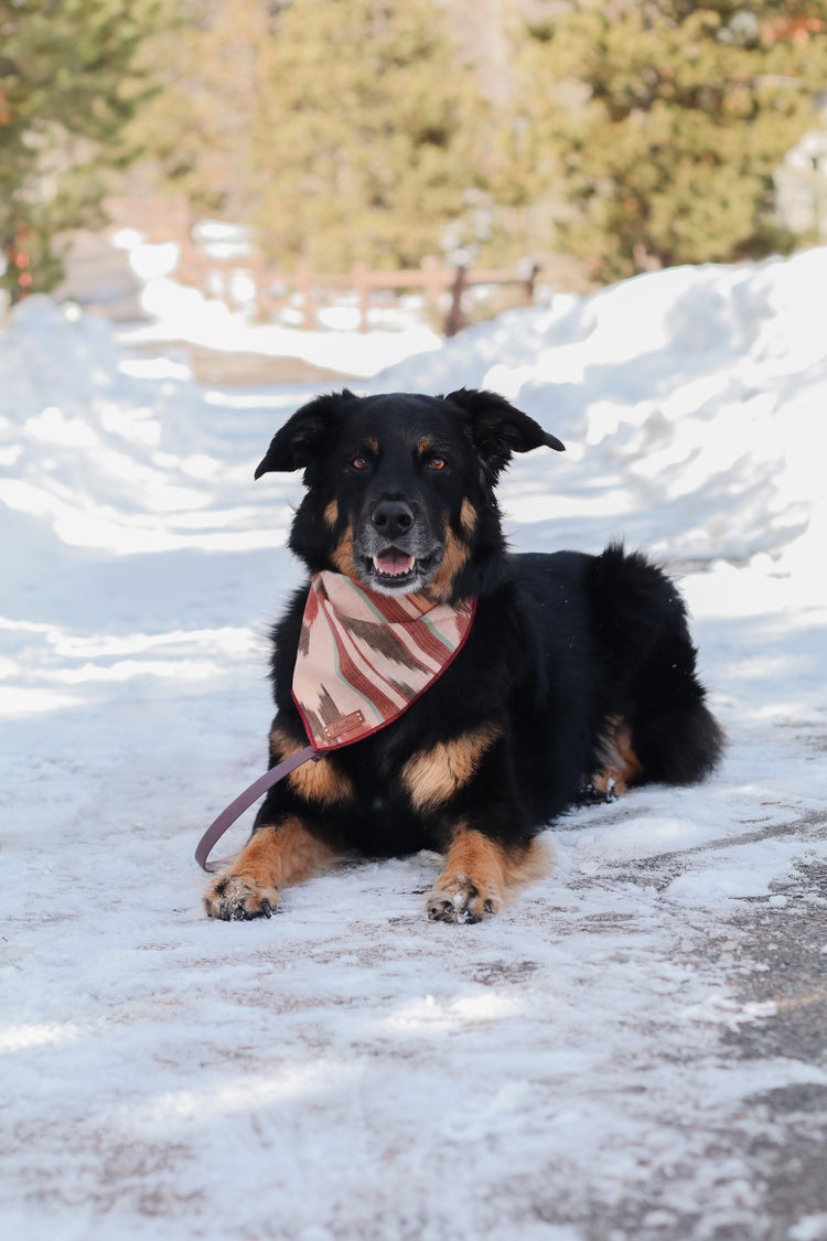 Each bandana features a faux leather tag and an added snap for durability. Simply roll + tie the bandana to fit your pup. This style has more sizing adjustability than a snap on.