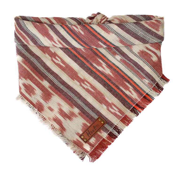 Each bandana features a faux leather tag and an added snap for durability. Simply roll + tie the bandana to fit your pup. This style has more sizing adjustability than a snap on.