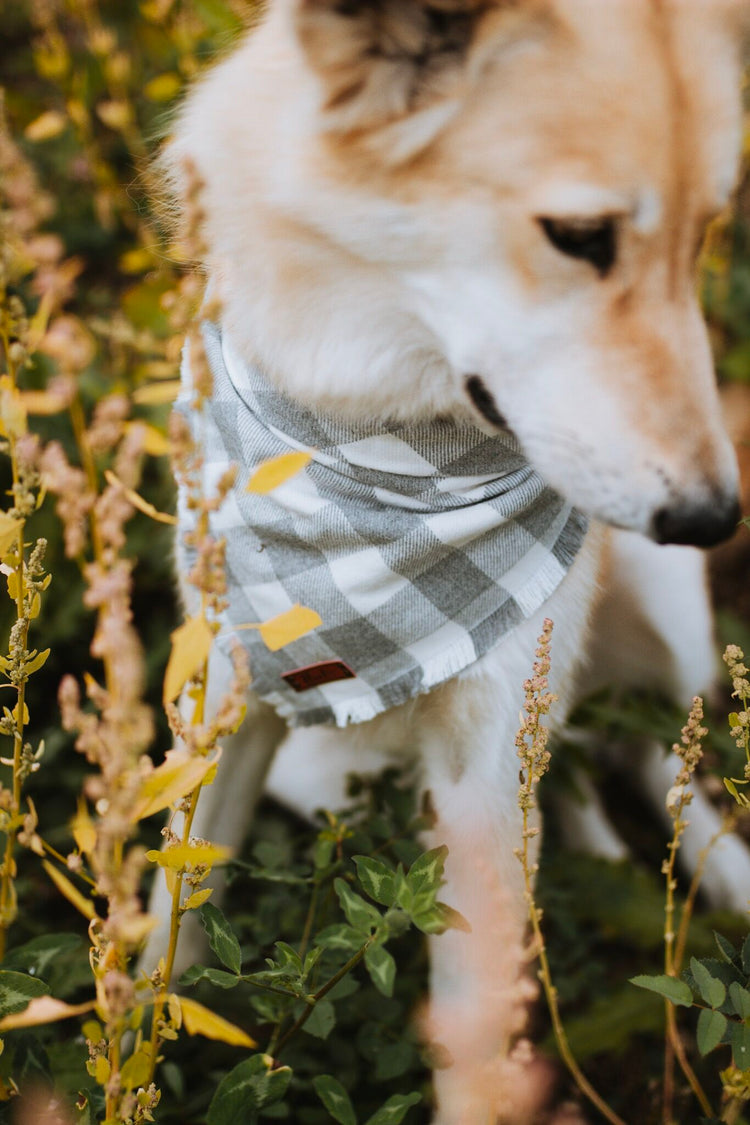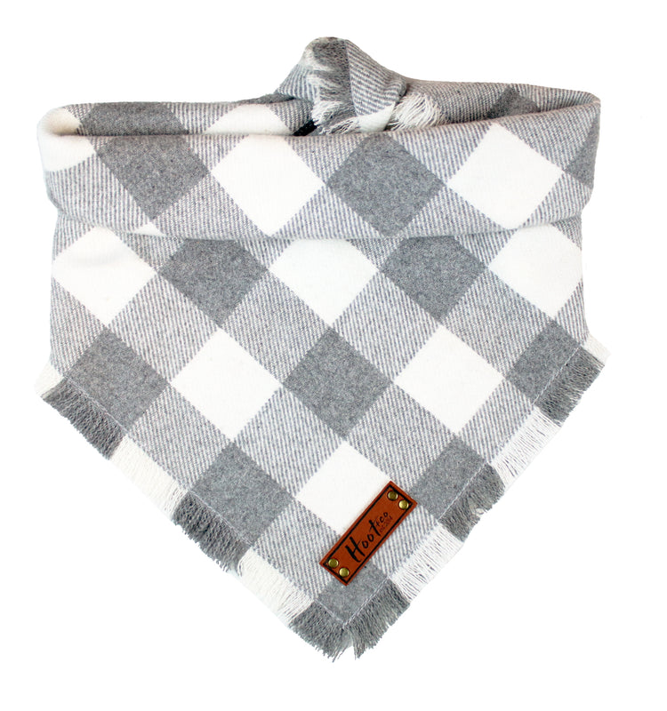 Snap On Bandana - Cotton flannel fabric, a coordinating solid backing and a durable Hoot + Co logo metal snap. Each bandana is hand cut and sewn to fit your animal precisely. Our bandanas feature a curved neck for a comfortable fit that won’t bunch up. All of our bandanas are reversible! Just simply snap them on the other way and you have a solid bandana also, perfect for adding your favorite patch to!