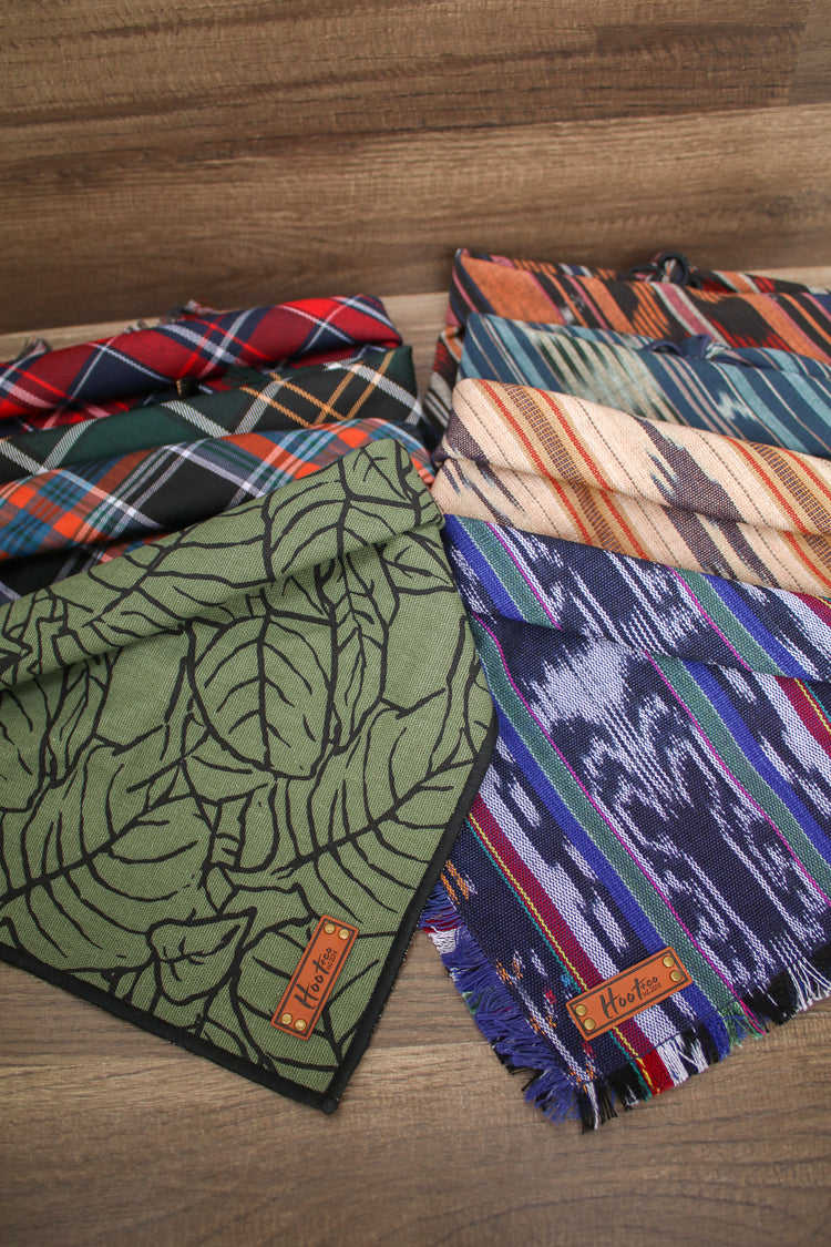 Each item is handmade from start to finish. Each bandana features a faux leather tag, frayed around all four edges, and an added snap for durability. With more adjustability, our new style only comes in four sizes. Please adjust the sizing using our size chart in the last photo from our standard bandanas to the fray as they're different. If your dog is fluffy, go with the larger of the two if the size falls into both categories. Example - An Australian shepherd will fit a Large fray best, but a Vizla can fit a standard due to small neck size and limited fur.