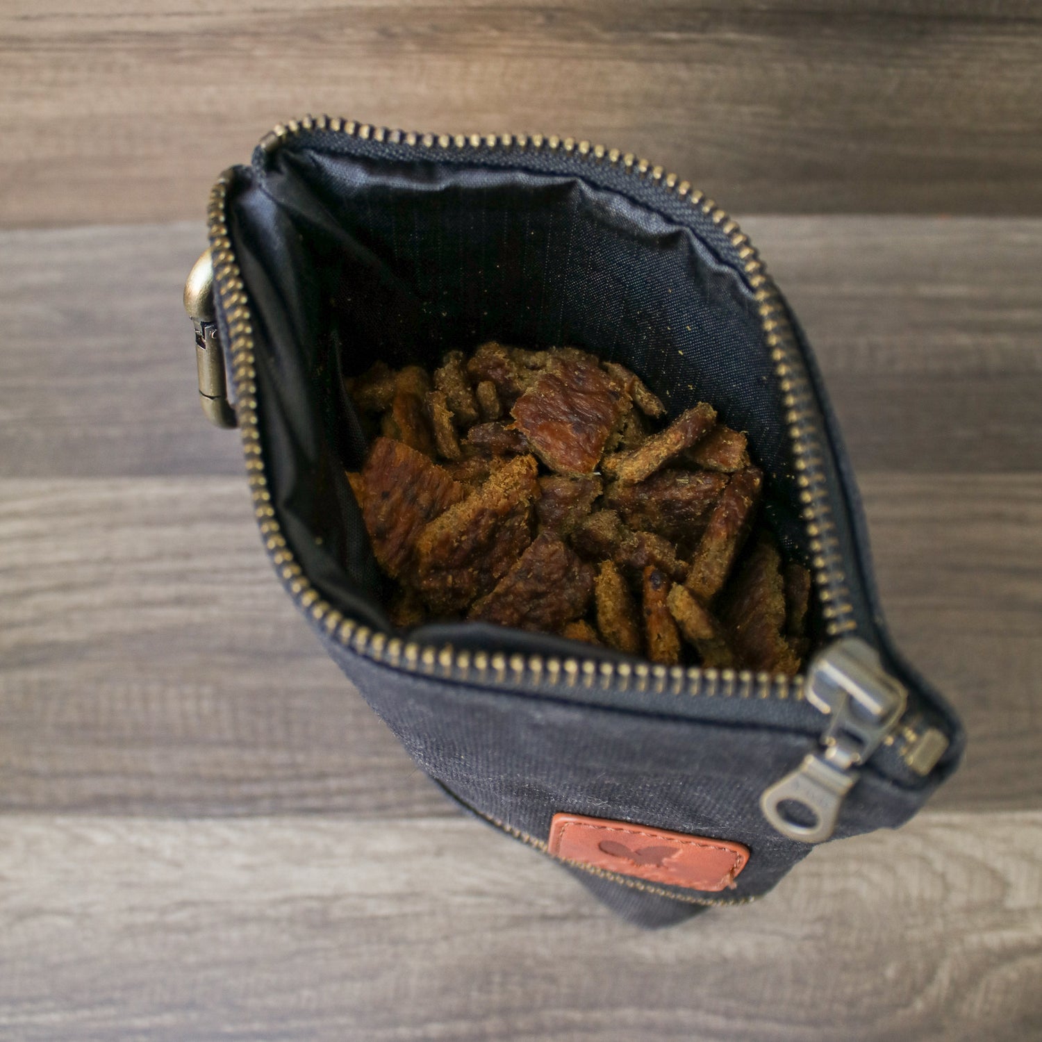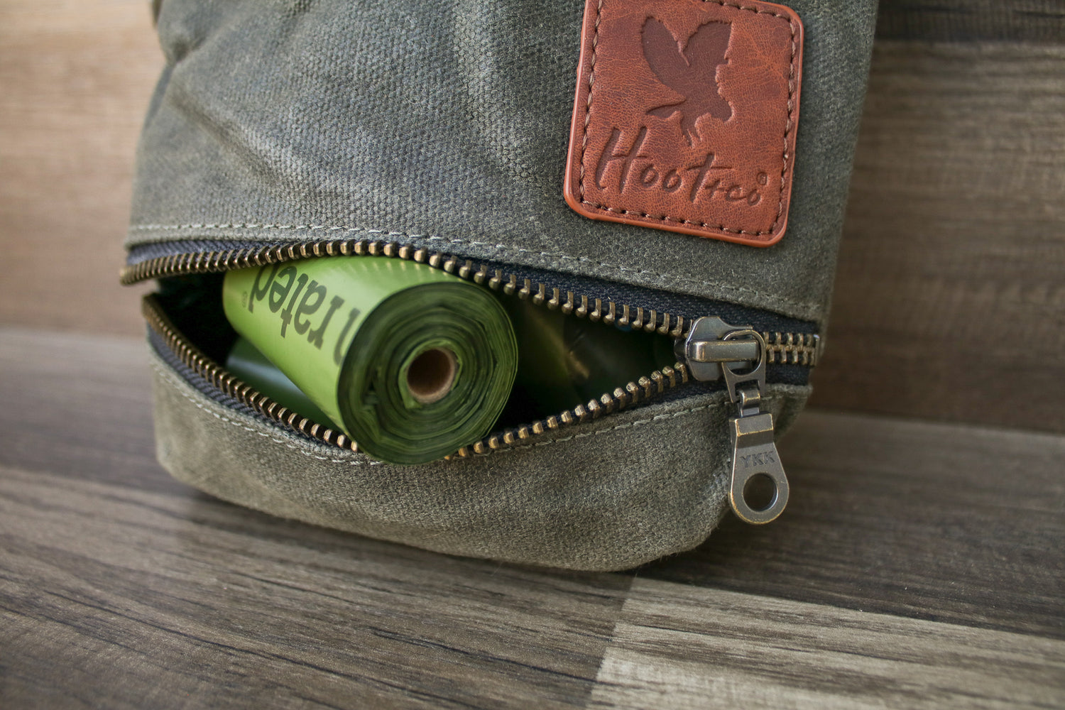 Our combo bag holders are made with 16 oz waxed canvas. Can be used as a treat bag or waste bag holder. Not recommended for both.