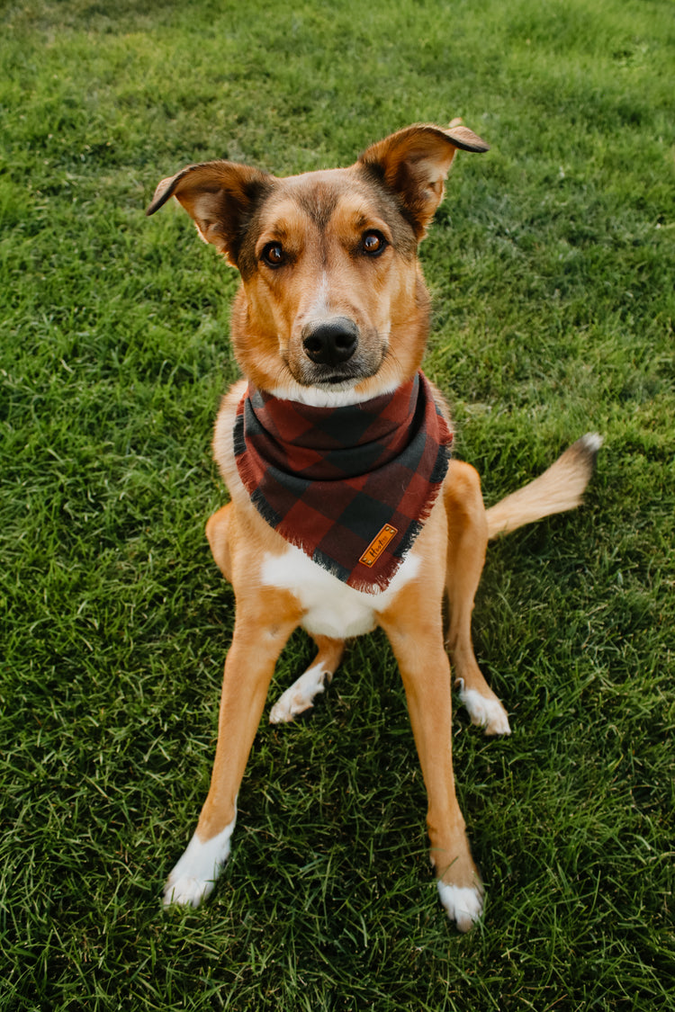 Frayed Bandana - Each bandana features a faux leather tag, frayed edges around all four edges, and an added snap for durability. Simply roll + tie the bandana to fit your pup. This style has more sizing adjustability than a snap on.