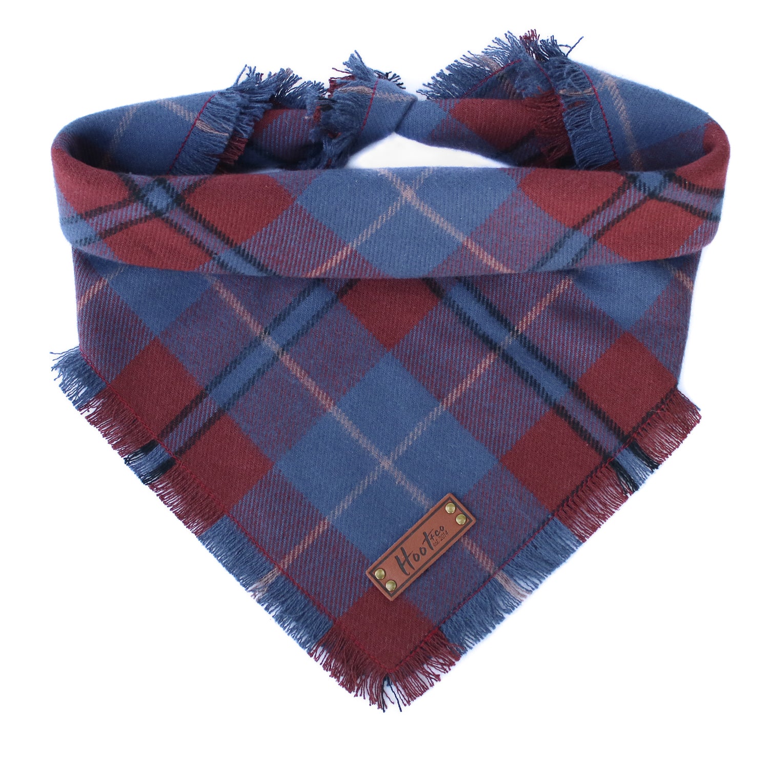 Frayed Bandana - Each bandana features a faux leather tag, frayed edges around all four edges, and an added snap for durability. Simply roll + tie the bandana to fit your pup. This style has more sizing adjustability than a snap on.