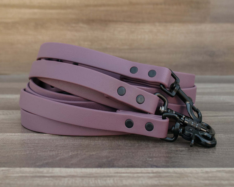 Your new favorite adventure leash! All of our leashes are made with a custom coated webbing and our very own colors! Although they may look similar to leather, they are made with a durable coated webbing that can withstand the elements. They are waterproof, mold resistant, and low maintenance! We use solid brass hardware which are resistant to rust. Brass hardware can patina with use when exposed to water + sun and may rub onto lighter coated coats.