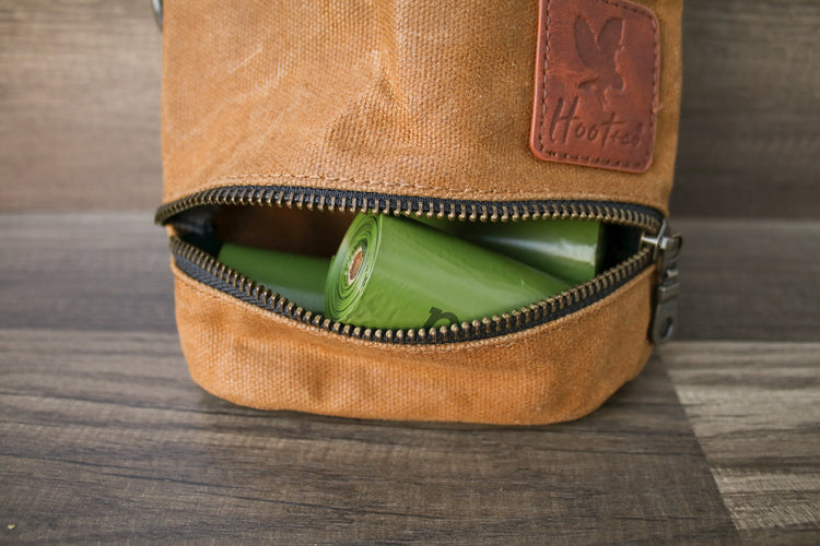 Our combo bag holders are made with 16 oz waxed canvas. Can be used as a treat bag or waste bag holder. Not recommended for both.