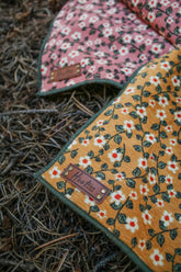 Snap On Bandana - Cotton fabric, a coordinating solid backing and a durable Hoot + Co logo metal snap. Each bandana is hand cut and sewn to fit your animal precisely. Our bandanas feature a curved neck for a comfortable fit that won’t bunch up. All of our bandanas are reversible! Just simply snap them on the other way and you have a solid bandana also, perfect for adding your favorite patch to!