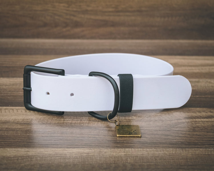 Your new favorite adventure collar! All of our collars are made with a custom coated webbing and our very own colors! Although they may look similar to leather, they are made with a durable coated webbing that can withstand the elements. They are waterproof, mold resistant, and low maintenance! All of our hardware on these collars are made with PVD coated brass, giving you the strongest coating possible!