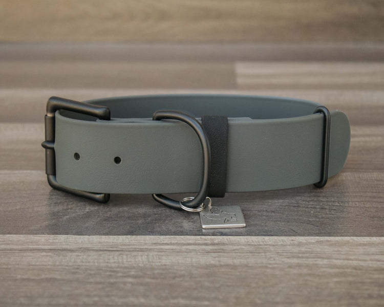 Your new favorite adventure collar! All of our collars are made with a custom coated webbing and our very own colors! Although they may look similar to leather, they are made with a durable coated webbing that can withstand the elements. They are waterproof, mold resistant, and low maintenance! We use zinc alloy coated buckles and solid brass hardware, both of which are resistant to rust. Brass hardware can patina with use when exposed to water + sun and may rub onto lighter coated coats.