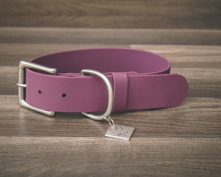 Your new favorite adventure collar! All of our collars are made with a custom coated webbing and our very own colors! Although they may look similar to leather, they are made with a durable coated webbing that can withstand the elements. They are waterproof, mold resistant, and low maintenance! We use zinc alloy coated buckles and solid brass hardware, both of which are resistant to rust. Brass hardware can patina with use when exposed to water + sun and may rub onto lighter coated coats.