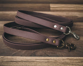 Your new favorite adventure leash! All of our leashes are made with a custom coated webbing and our very own colors! Although they may look similar to leather, they are made with a durable coated webbing that can withstand the elements. They are waterproof, mold resistant, and low maintenance! We use solid brass hardware which are resistant to rust. Brass hardware can patina with use when exposed to water + sun and may rub onto lighter coated coats.
