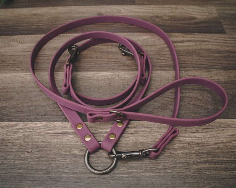 Your new favorite adventure leash! All of our leashes are made with a custom coated webbing and our very own colors! Although they may look similar to leather, they are made with a durable coated webbing that can withstand the elements. They are waterproof, mold resistant, and low maintenance! We use solid brass hardware which are resistant to rust. Brass hardware can patina with use when exposed to water + sun and may rub onto lighter coated coats.