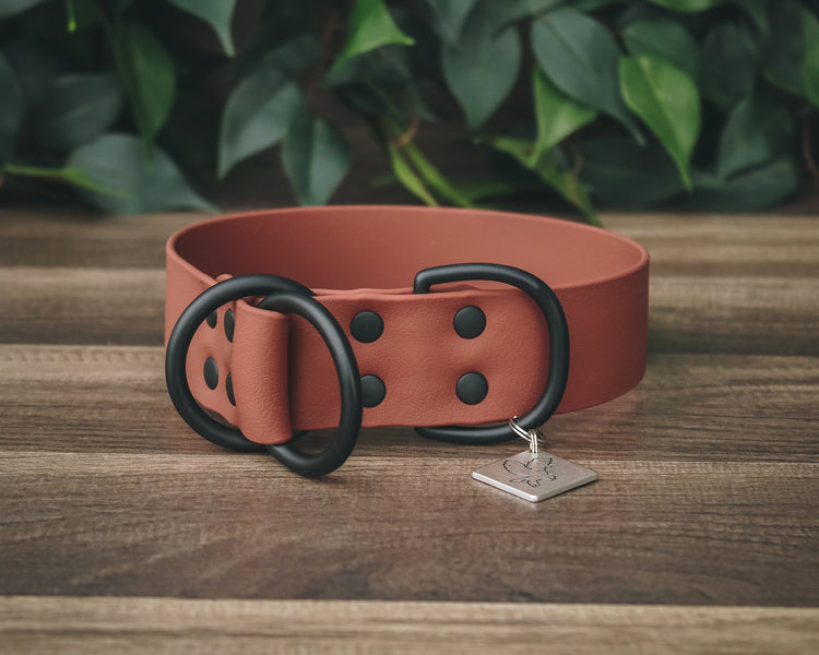 Your new favorite adventure collar! All of our collars are made with a custom coated webbing and our very own colors! Although they may look similar to leather, they are made with a durable coated webbing that can withstand the elements. They are waterproof, mold resistant, and low maintenance! All of our hardware on these collars are made with PVD coated brass, giving you the strongest coating possible!