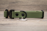 Your new favorite adventure collar! All of our collars are made with a custom coated webbing and our very own colors! Although they may look similar to leather, they are made with a durable coated webbing that can withstand the elements. They are waterproof, mold resistant, and low maintenance! We use zinc alloy coated buckles and solid brass hardware, both of which are resistant to rust. Brass hardware can patina with use when exposed to water + sun and may rub onto lighter coated coats.