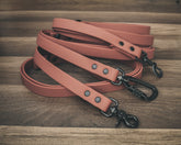 Your new favorite adventure leash! All of our leashes are made with a custom coated webbing and our very own colors! Although they may look similar to leather, they are made with a durable coated webbing that can withstand the elements. They are waterproof, mold resistant, and low maintenance! These leashes are a combination of PVD coated and powder coated hardware.