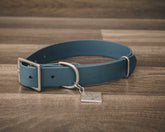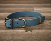 Your new favorite adventure collar! All of our collars are made with a custom coated webbing and our very own colors! Although they may look similar to leather, they are made with a durable coated webbing that can withstand the elements. They are waterproof, mold resistant, and low maintenance! We use zinc alloy coated buckles and solid brass hardware, both of which are resistant to rust. Brass hardware can patina with use when exposed to water + sun and may rub onto lighter coated coats.