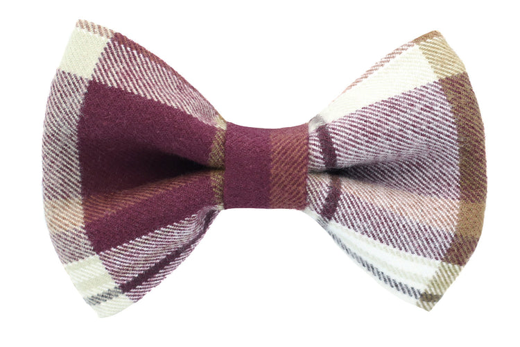 Our pet bow ties are made with high quality fabric and a built in stabilizer to prevent from becoming squished over wear. Each one has a velcro loop that wraps snugly on your pets collar. Each bow tie has a coordinating color in the inside to match. Each bow tie may have a different pattern, depending on how it's cut.