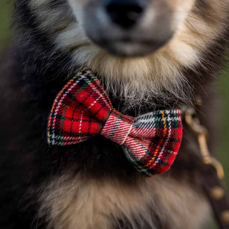 Our pet bow ties are made with high quality fabric and a built in stabilizer to prevent from becoming squished over wear. Each one has a velcro loop that wraps snugly on your pets collar. Each bow tie has a coordinating color in the inside to match. Each bow tie may have a different pattern, depending on how it's cut.