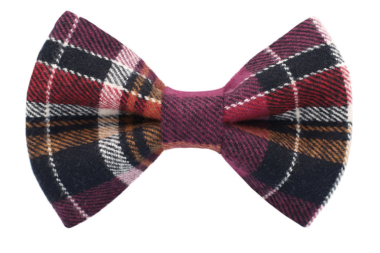 Our pet bow ties are made with high quality fabric and a built in stabilizer to prevent from becoming squished over wear. Each one has a velcro loop that wraps snugly on your pets collar. Each bow tie has a coordinating color in the inside to match. Each bow tie may have a different pattern, depending on how it's cut.