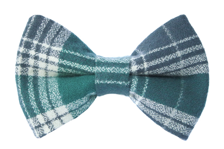 Our pet bow ties are made with high quality fabric and a built in stabilizer to prevent from becoming squished over wear. Each one has a velcro loop that wraps snugly on your pets collar. Each bow tie has a coordinating color in the inside to match. Each bow tie may have a different pattern, depending on how it's cut.