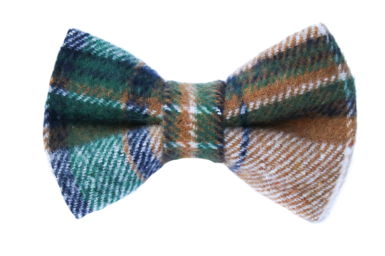 Our pet bow ties are made with high quality fabric and a built in stabilizer to prevent from becoming squished over wear. Each one has a velcro loop that wraps snugly on your pets collar. Each bow tie has a coordinating color in the inside to match. Each bow tie may have a different pattern, depending on how it's cut.