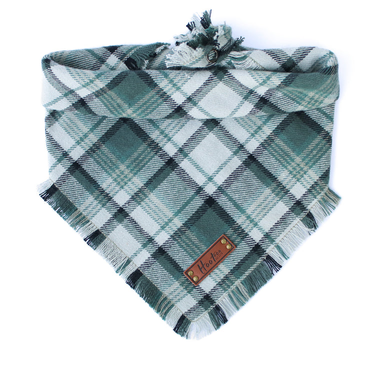 Frayed Bandana - Each bandana features a faux leather tag, frayed edges around all four edges, and an added snap for durability. Simply roll + tie the bandana to fit your pup. This style has more sizing adjustability than a snap on.