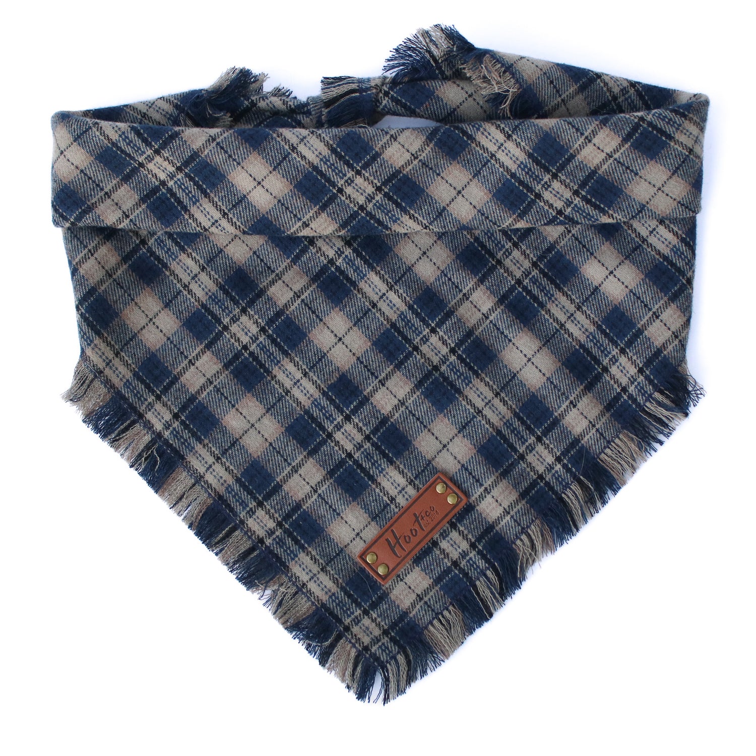 Snap On Bandana - Cotton flannel fabric, a coordinating solid backing and a durable Hoot + Co logo metal snap. Each bandana is hand cut and sewn to fit your animal precisely. Our bandanas feature a curved neck for a comfortable fit that won’t bunch up. All of our bandanas are reversible! Just simply snap them on the other way and you have a solid bandana also, perfect for adding your favorite patch to!