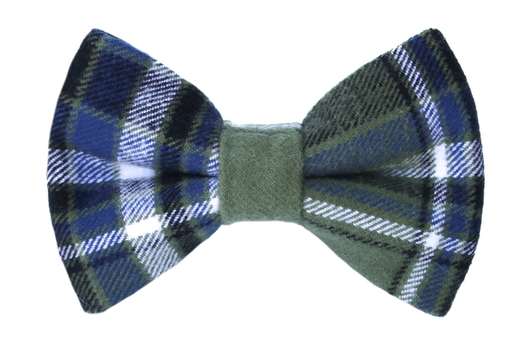 Our pet bow ties are made with high quality fabric and a built in stabilizer to prevent from becoming squished over wear. Each one has a velcro loop that wraps snugly on your pets collar. Each bow tie has a coordinating color in the inside to match. Each bow tie may have a different pattern, depending on how it's cut.