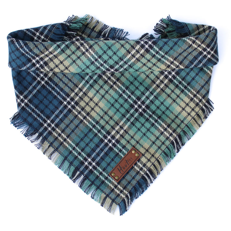 Frayed Bandana - Each bandana features a faux leather tag, frayed edges around all four edges, and an added snap for durability. Simply roll + tie the bandana to fit your pup. This style has more sizing adjustability than a snap on.