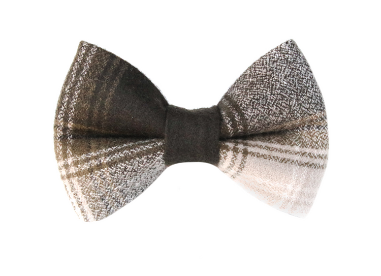 Our pet bow ties are made with high quality fabric and a built in stabilizer to prevent from becoming squished over wear. Each one has a velcro loop that wraps around your pets collar. Each bow tie has a coordinating color in the inside to match. Each bow tie may have a different pattern, depending on how it's cut.