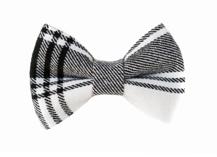 Our pet bow ties are made with high quality fabric and a built in stabilizer to prevent from becoming squished over wear. Each one has a velcro loop that wraps around your pets collar. Each bow tie has a coordinating color in the inside to match. Each bow tie may have a different pattern, depending on how it's cut.