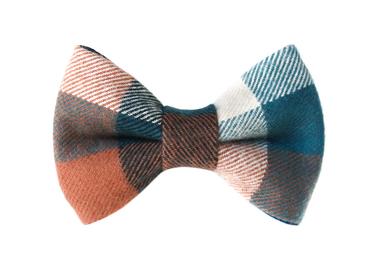 Our pet bow ties are made with high quality fabric and a built in stabilizer to prevent from becoming squished over wear. Each one has a velcro loop that wraps around your pets collar. Each bow tie has a coordinating color in the inside to match. Each bow tie may have a different pattern, depending on how it's cut.