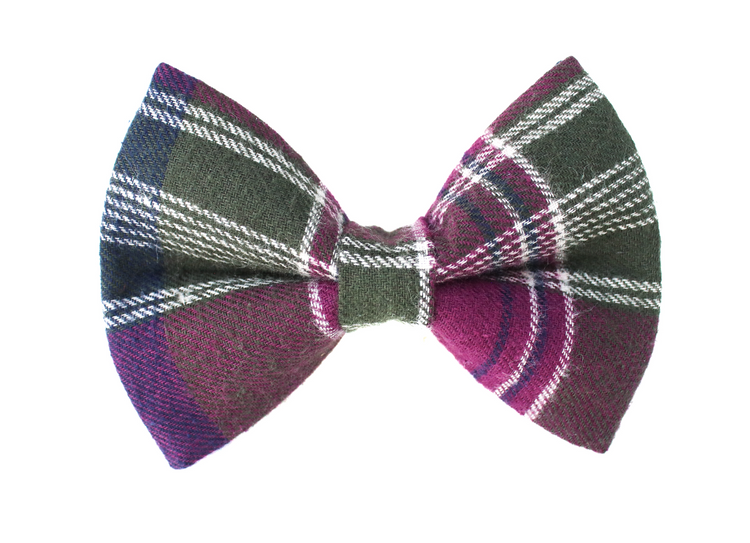 Our pet bow ties are made with high quality fabric and a built in stabilizer to prevent from becoming squished over wear. Each one has a velcro loop that wraps around your pets collar. Each bow tie has a coordinating color in the inside to match. Each bow tie may have a different pattern, depending on how it's cut.